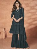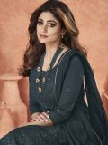 Exude regal vibes adorning this grey color flared kameez in georgette. Furnished using thread embroidery all over. Available with a matching georgette dupatta and a matching sharara in georgette. Note: Accessories shown are for styling purpose only. Slight color variation may occur due to photographic reasons. The semi-stitched kameez can be customised upto 42 inches.