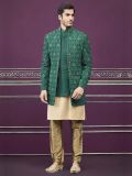 Green Colour Silk Fabric Men's Indowestern With Matching Patiala Style Pajama And Kurta.