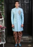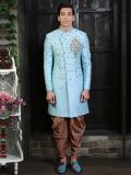 Ideally suited for special occassions is this wonderful Sky Blue Colour Silk Fabric Men's Indo Western With Thread,Zari,Zardozi Work.