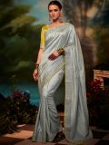 Shine bright like a diamond adorning this silver color saree crafted in silk. Elevated using woven patterns, showcasing distinstive embroidered borders and pallu. Available with a contrast matching yellow color embroidered blouse in silk. Note: The accessories featured are purely for fashion purposes. Due to photography reasons, some color variations may occur. The un-stitched blouse may be customized up to 42 inches.