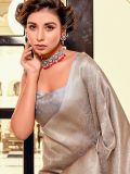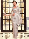 Bring out your hidden charm wearing this silver color saree crafted in silk. Augmented using zari woven patterns all over, showcasing pallu with threaded tassels. Comes with a matching silver color blouse in silk. Note: The accessories featured are purely for fashion purposes. Due to photography reasons, some color variations may occur. The un-stitched blouse may be customized up to 42 inches.
