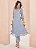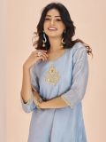 Look no less than a dream wearing this light steel blue color readymade kurti made in organza. Augmented using hand work embroidery. Paired with matching blue color pant style bottom in organza. Note: Some color variations may occur owing to photography causes. Up to 1 inch of measurement fluctuation is possible.