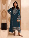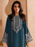 Twirl in style sporting this teal blue color straight cut kameez in georgette. Augmented using floral thread work embroidery all over. Comes with a matching blue color dupatta in georgette and a pant style bottom made in santoon. Note: Accessories shown are for styling purpose only. Slight color variation may occur due to photographic reasons. The semi-stitched kameez can be customised upto 42 inches.