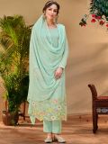 Spread cheer as you wear this turquoise color straight cut kameez in georgette. Dcorated using sequins and thread embroidery all over. Available with a matching chiffon dupatta and a matching bottom in shantoon. Note: Accessories shown are for styling purpose only. Slight color variation may occur due to photographic reasons. The semi-stitched kameez can be customised upto 42 inches.