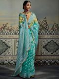 Show your feminine side wearing this turquoise color saree crafted in organza. Augmented using brasso patterns all over. Comes with an embroidered yellow color blouse in organza. Note: The accessories featured are purely for fashion purposes. Due to photography reasons, some color variations may occur. The un-stitched blouse may be customized up to 42 inches.