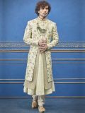 An Superb Cream Colour Silk Fabric Indian Men's Sherwani Will Make You Look Very Stylish And Graceful.