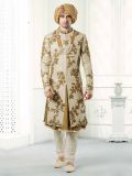 Spectacular Off white sherwani paired with a green Anarkali Kurta embellished with hand work in zardozi,zari & thread.It is an ideal wedding worthy ensemble to celebrate your moments with this fascinating outfit.