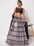 Get a praiseworthy look adorning this white color lehenga in art silk. Decked using prints with sequins and thread embroidered work. Teamed with a matching dark purple color mirror embellished choli and purple dupatta, both made in georgette. Note: The accessories featured are purely for fashion purposes. Due to photography reasons, some color variations may occur. The semi-stitched choli and lehenga waist may be customized up to 42 inches.