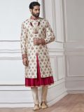White,Cream Color Silk Sherwani With Matching Anarkali Kurta With Churidar Pajama and Zari,Embroidery Work to add a grace.