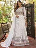 Switch on your elegant mode on wearing this white color anarkali kameez in georgette. Decked with zari and thread work embroidery with sequins all over. Comes with a matching georgette dupatta and a matching bottom in shantoon with linings. Note: Accessories shown are for styling purpose only. Slight color variation may occur due to photographic reasons. The semi-stitched kameez can be customised upto 42 inches.