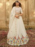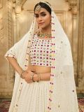 Create a flawless ethnic look wearing this white hued lehenga in georgette. Augmented with floral themes sequins and thread embroidered work. Teamed with a matching white color choli in georgette and a white color georgette dupatta, both embellished in similar work. Please keep in mind that the accessories featured are purely for fashion purposes. Due to photography reasons, some color variations may occur. The semi-stitched choli and lehenga waist may be customized up to 42 inches.