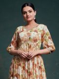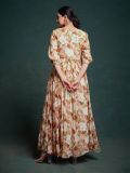 Wear a dress that turns moment into memories in this white color quarter sleeved gown made in georgette. Augmented with digital print in floral pattern. The dress does not contain bottom. Note: Some color variations may occur owing to photography causes. Up to 1 inch of measurement fluctuation is possible.