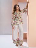 Get your hands on this white color co-ord set made in muslin silk. Enhanced with floral printed pattern all over. Note: Some color variations may occur owing to photography causes. Up to 1 inch of measurement fluctuation is possible.