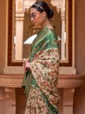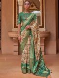 Get all the festive vibes wearing this white color saree crafted in silk. Designed with dense patola print and showcasing woven distinctive borders. Paired with a matching green printed blouse in silk. Note: The accessories featured are purely for fashion purposes. Due to photography reasons, some color variations may occur. The un-stitched blouse may be customized up to 42 inches.