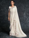 Overwhelm the onlookers wearing this white color saree crafted in georgette. Decorated using sequins, thread embroidered patterns with stone embellisgments all over. Available with a matching white color blouse in georgette. Note: The accessories featured are purely for fashion purposes. Due to photography reasons, some color variations may occur. The un-stitched blouse may be customized up to 42 inches.