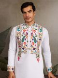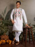 Get the praiseworthy look wearing this white color readymade kurta designed in viscose silk. Crafted with sequins with floral thread embellishment work all over. Available with a off white color pyjama in cotton. Note: Some color variations may occur owing to photography causes. Up to 1 inch of measurement fluctuation is possible.