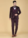 Show your feminine side to the world wearing this wine color tuxedo suit set designed in velvet. Augmented with sequins work embellishments all over. The tuxedo contains blazer coat paired with the waist coat, bow or a inside white color shirt and a pant in matching wine color. Note: Some color variations may occur owing to photography causes. Up to 1 inch of measurement fluctuation is possible.