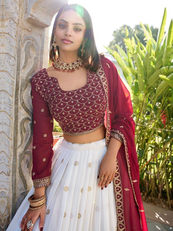 Nowadays, Georgette Lehenga has turned into a classic for the feminine hearts who aim to combine traditional and modern societal trends. These beautiful outfits from different Indian weddings are available in many color combinations, fabrics, and textures, as shown below. If it is a grand celebration or when you plan to go to any festive occasion, then you must opt for a Georgette Lehenga Choli. Georgette fabric is delicate and light in texture, which gives a free-moving drape to all sorts of outfits. The beauty of wearing a Indian Lehenga Choli can be attributed to its flexibility because everyone looks orgasmic in it aside from the comfort it brings. They come in a range of colors, starting from the light pastels to the bolder colors, thus satisfying different ladies’ color choices. A Georgette Lehenga Choli with a dupatta on your head gives a new look that can be transformed into a royal outfit. These lehengas are ornamented, embroidered, and chic, which makes them popular for weddings, receptions, and other festivities.