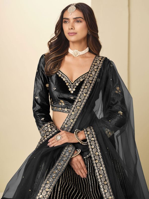 As with most Indian functions, Parivar ceremonies focus on love, togetherness, and the eternal bond. A velvet lehenga choli is suitable for such occasions as it brings together neat glamour, carrying with it the essence of Indian culture. This rich fabric, tastefully bejeweled and beautifully embroidered, perfectly fits in family and wedding occasions as well as any festive event.