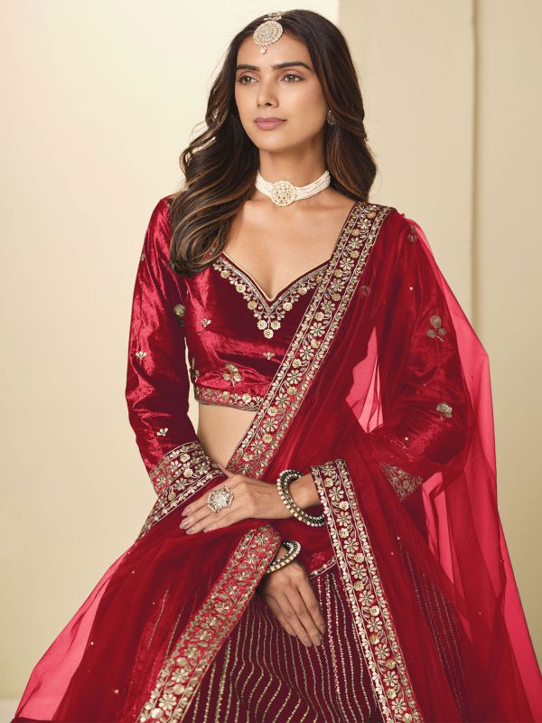 Therefore, when you shop online for Velvet Lehenga, you are choosing a piece of clothing that honors tradition in equal measure with modernity. Here are some standout features: