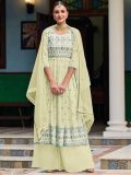 Spread cheer sporting this light yellow color gathered kameez in georgette. Enhanced using sequins and thread embroidery all over. Available with a matching net dupatta and a matching palazzo in georgette. Note: Accessories shown are for styling purpose only. Slight color variation may occur due to photographic reasons. The semi-stitched kameez can be customised upto 42 inches.