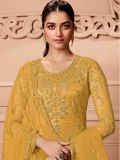 Exude sweet vibes on with this yellow color staright cut kameez in net. Augmented using stones and thread embroidery all over. Teamed up with a matching net dupatta and pants in satin. Note: Accessories shown are for styling purpose only. Slight color variation may occur due to photographic reasons. The semi-stitched kameez can be customised upto 42 inches.