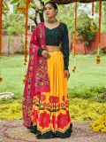 Illuminate a mesmerising lavishness adorning this yellow hued festive lehenga choli crafted in cotton. Enhanced with floral prints all over. Available along with a green color sequined cotton choli and a pink embroidered dupatta made of cotton. Please keep in mind that the accessories featured are purely for fashion purposes. Due to photography reasons, some color variations may occur. The semi-stitched choli and lehenga waist may be customized up to 42 inches.