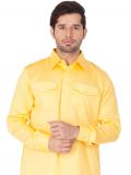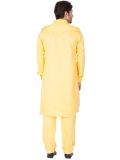 Get all the festive vibes adorning this yellow color kurta made in cotton. Elevated with coller pattern and patch pockets. Comes with a yellow color pathani salwar in cotton. Note: Some color variations may occur owing to photography causes. Up to 1 inch of measurement fluctuation is possible.