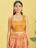 Give a glamorous glance wearing this multicolor color designer lehenga in organza. Decorated with sequins, mirrors and thread embroidered work. Paired with a matching multicolor color mirror work embroidered blouse made in art silk and orange color dupatta, made in organza. Note: The accessories featured are purely for fashion purposes. Due to photography reasons, some color variations may occur. The semi-stitched choli and lehenga waist may be customized up to 42 inches.