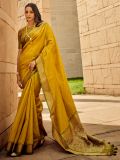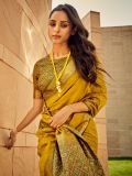 Wrap yourself in culture wearing this medallion yellow color saree crafted in silk. Decorated using bandhej print with woven patterns, showcasing distinstive borders and pallu. Comes with a matching yellow color blouse in silk. Note: The accessories featured are purely for fashion purposes. Due to photography reasons, some color variations may occur. The un-stitched blouse may be customized up to 42 inches.