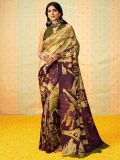Steal the limelight adorning this fawn yellow color saree crafted in tussar silk. Furnished using aesthetic themed tie-dye printed patterns all over. Comes with a contrast matching green color blouse in tussar silk. Note: The accessories featured are purely for fashion purposes. Due to photography reasons, some color variations may occur. The un-stitched blouse may be customized up to 42 inches.
